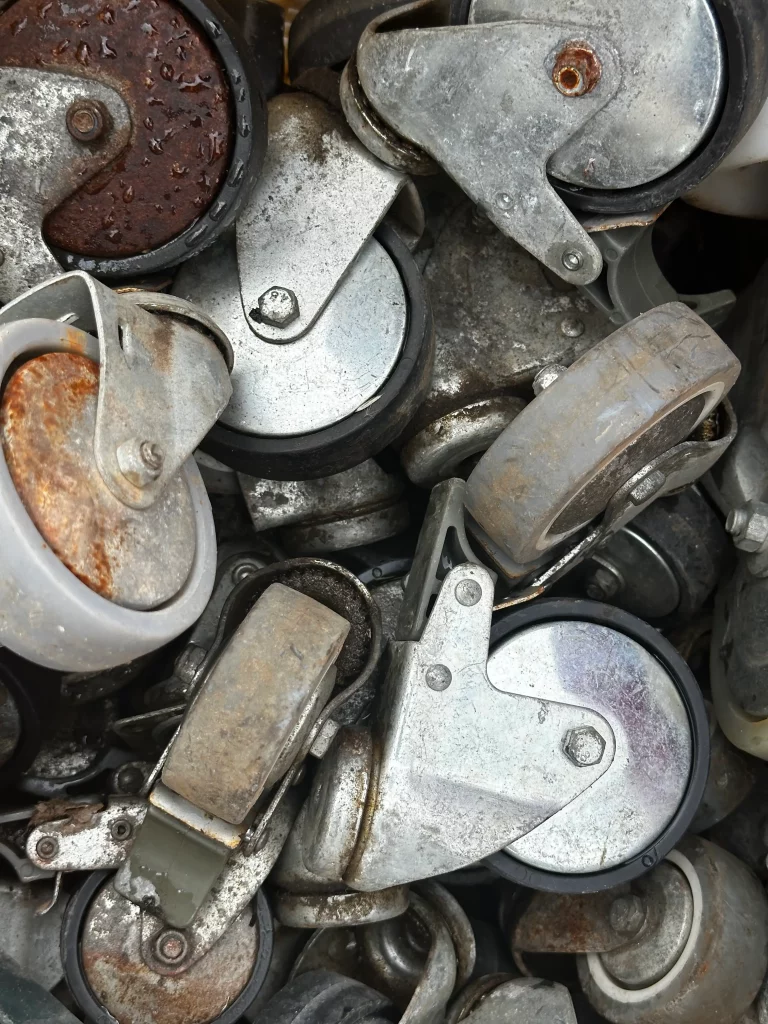 Cuando se mueven muebles, se reorganizan estancias o se tira equipamiento viejo, aparecen ruedas industriales, soportes, bisagras y mecanismos metálicos que ya no tienen uso. Estos elementos suelen llegar en grandes cantidades en diciembre y son perfectos para reciclar gracias a la variedad de aleaciones y piezas que contienen.