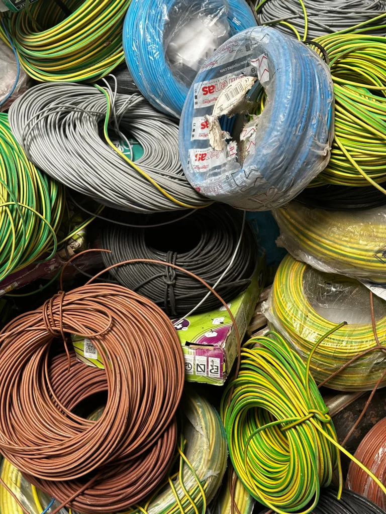 Otro clásico de estas fechas son los restos de obras: bobinas de cable que sobraron de una instalación, rollos sin estrenar, tramos sueltos, luces, tubos y todo tipo de material eléctrico que se guardó tras una reforma.